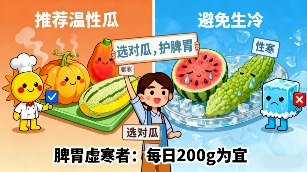 空腹时别吃瓜 —— 此时胃里没有食物缓冲,寒凉瓜类直接刺激胃黏膜,容易引发痉挛、腹痛;运动后别马上吃瓜 —— 运动后身体发热,毛孔张开,此时吃凉瓜,寒气容易通过毛孔侵入体内,还可能导致胃肠功能紊乱;秋冬季少吃瓜 ——“秋瓜坏肚” 不是谣言,入秋后气温下降,脾胃阳气逐渐减弱,再吃寒凉瓜类,更容易诱发腹泻、消化不良,建议秋冬以南瓜、木瓜等温和瓜类为主。