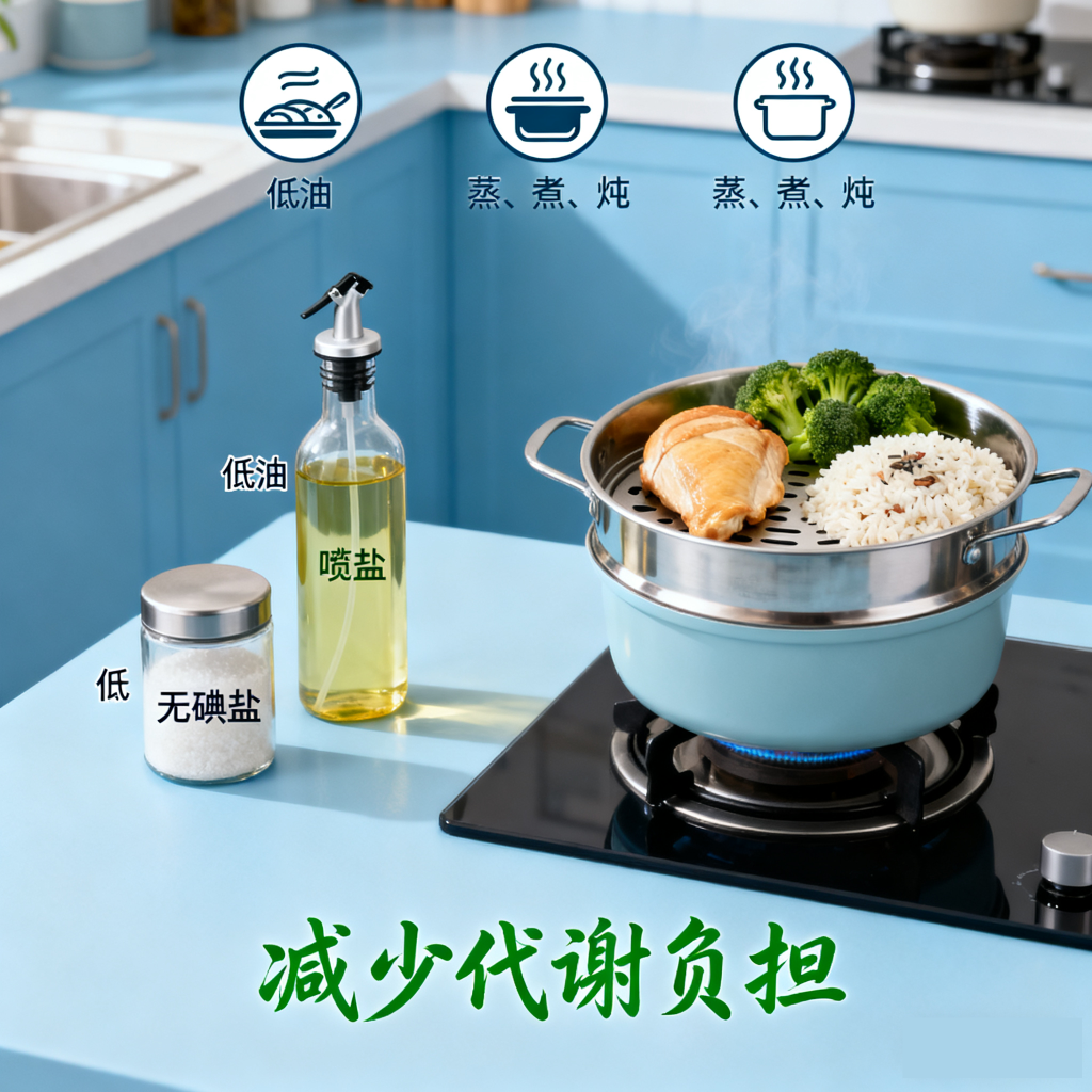 4.选择 “低油低盐” 的烹饪方式:减少额外代谢负担