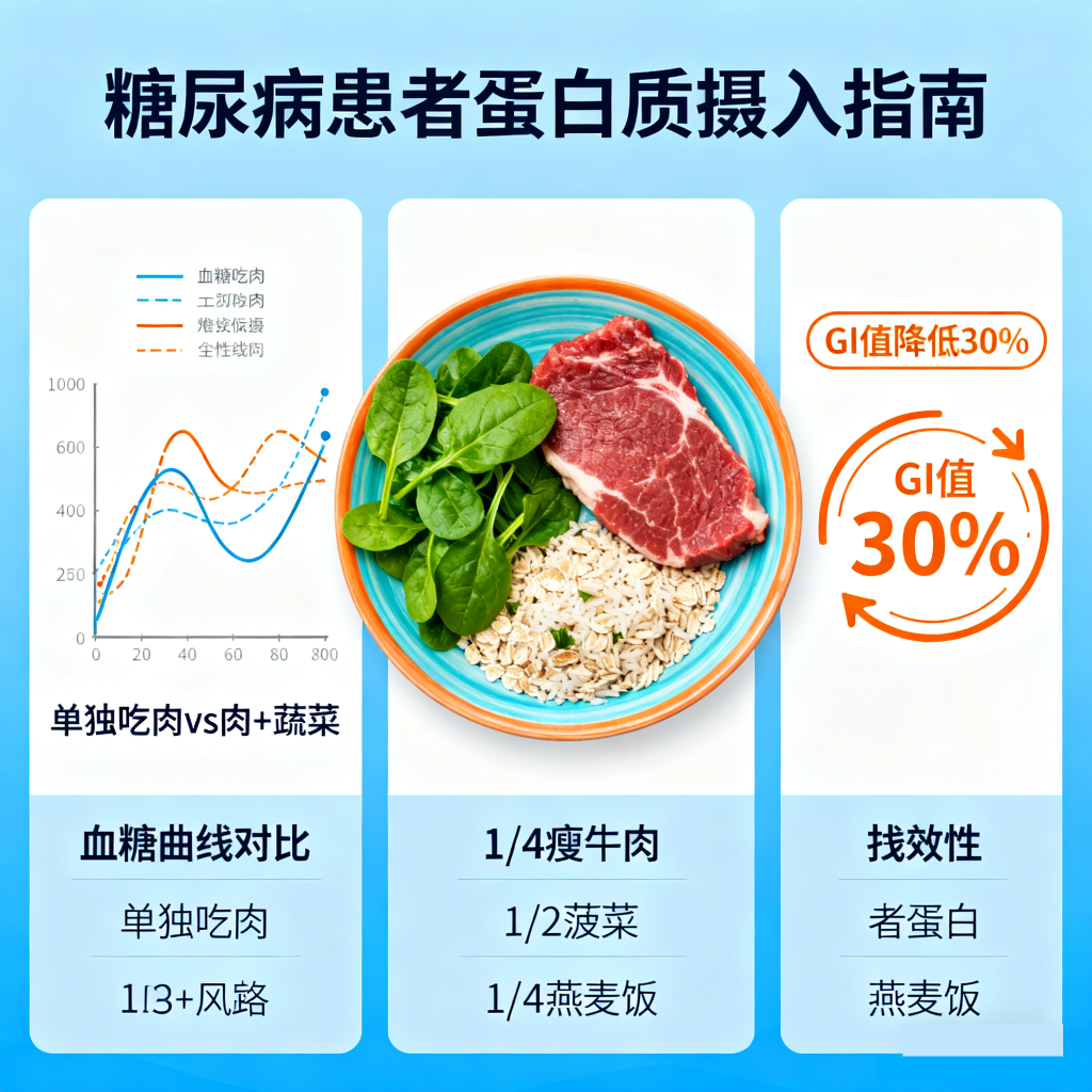 真相:即使是瘦肉,过量摄入也会增加蛋白质代谢负担,刺激胰高血糖素分泌,间接升高血糖。例如,每天吃200 克瘦猪肉,蛋白质摄入量会超过推荐标准的50%,长期如此仍会增加糖尿病风险。因此,瘦肉也需控制在每日推荐量内。