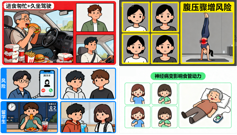 胃食管反流病的发生与生活习惯、身体状态密切相关,以下人群需重点防范: