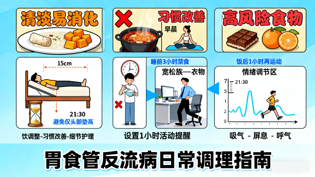 出现反复咳嗽、夜间反酸后,可按 “先调理、再就医” 的步骤处理,避免延误病情: