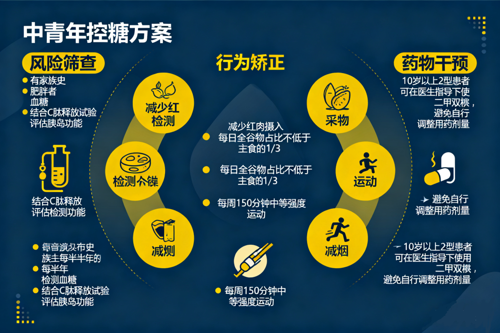 需警惕非典型症状:儿童伤口愈合缓慢、反复感染;中青年不明原因疲劳、皮肤瘙痒;青少年体重骤降但食量增加。出现上述情况应立即进行血糖及糖化血红蛋白检测。
