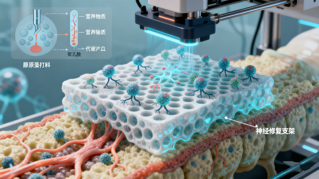 未来可通过 3D 生物打印技术,将干细胞与生物材料(如胶原蛋白、聚乳酸)结合,打印出与脊髓损伤区域匹配的 “支架”:
