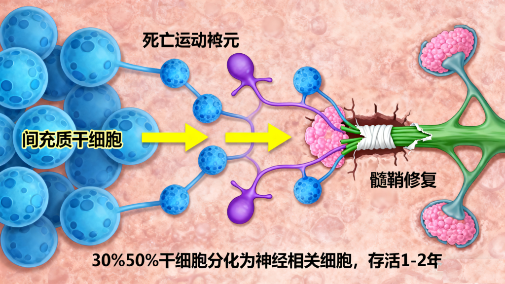 临床研究显示,将干细胞移植到脊髓损伤部位后,约 30%-50% 的细胞会分化为神经相关细胞,且存活时间可达 1-2 年,为神经修复提供持续支持。