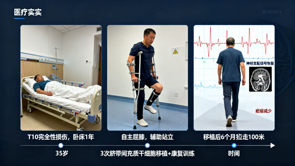 2023 年,我国某医院为一位因车祸导致 T10 椎体完全性脊髓损伤(胸 10 以下失去知觉,卧床 1 年)的 35 岁男性,实施了间充质干细胞移植(来源于脐带):