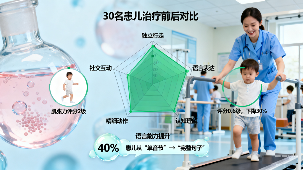 干细胞在小儿脑瘫治疗中也展现出潜力。2024 年某儿童康复中心的数据显示,对 30 名痉挛型脑瘫患儿(3-6 岁,无法独立行走、语言发育迟缓)实施脐带间充质干细胞移植后: