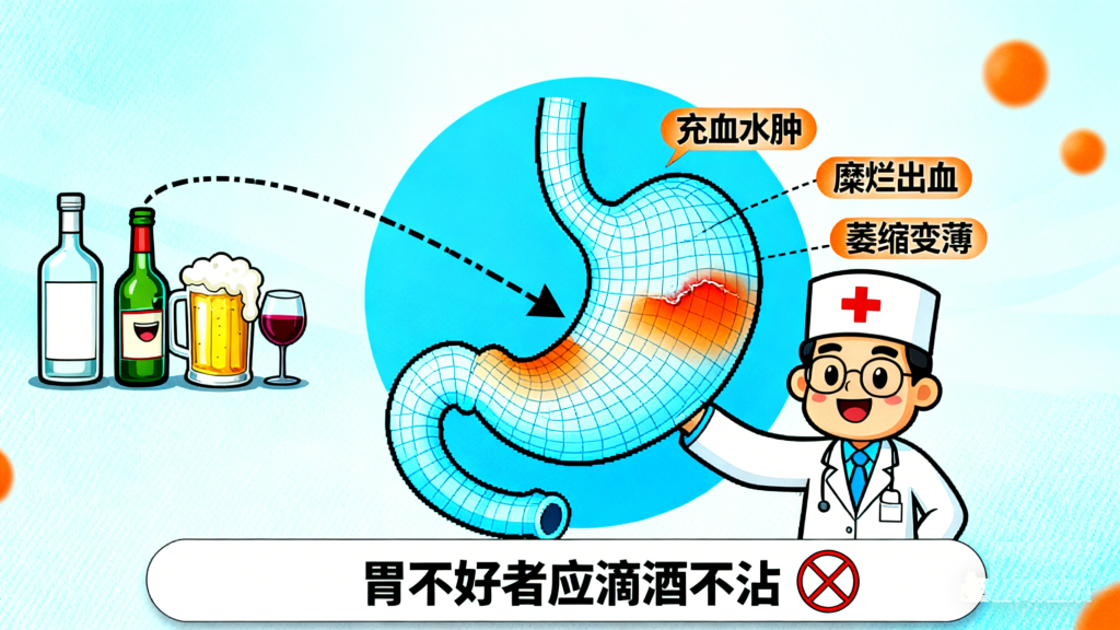 无论是白酒、啤酒还是红酒,酒精都会对胃黏膜造成直接的化学性损伤。低浓度酒精会刺激胃黏膜充血、水肿,高浓度酒精则可能直接导致胃黏膜糜烂、出血,长期饮酒还可能诱发萎缩性胃炎,增加胃癌的风险。即使是“低度酒”“养生酒”,对胃部也有刺激作用,胃不好的人应做到滴酒不沾。