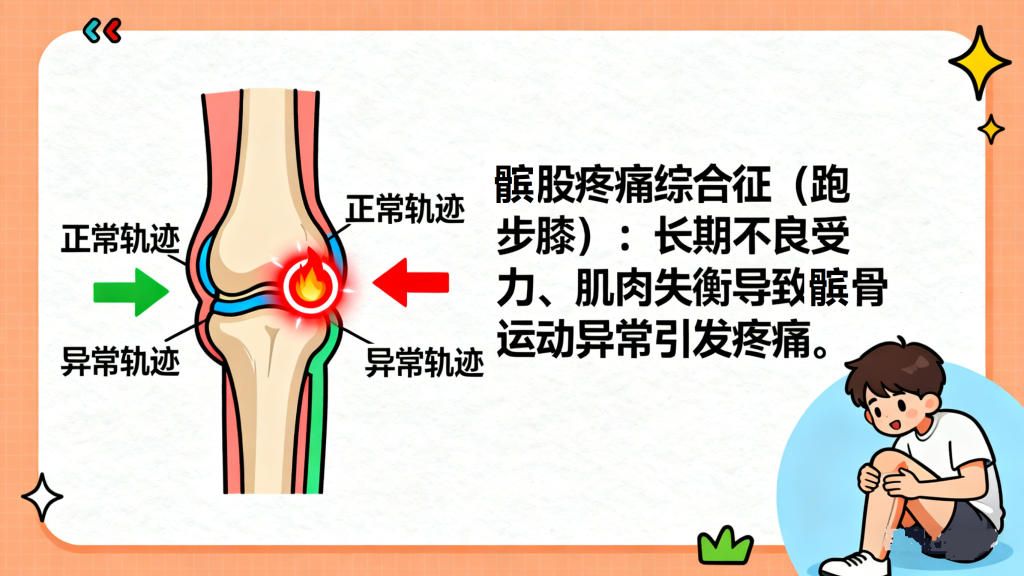 突然增加运动强度或改变运动方式是常见诱因。比如平时很少运动的人突然开始高强度跑步、跳绳,或者频繁进行深蹲、爬楼梯等膝关节负重较大的运动,会使髌股关节承受远超耐受范围的压力。此外,运动时姿势错误,如跑步时脚落地过重、深蹲时膝盖内扣,也会加剧髌骨的异常磨损。