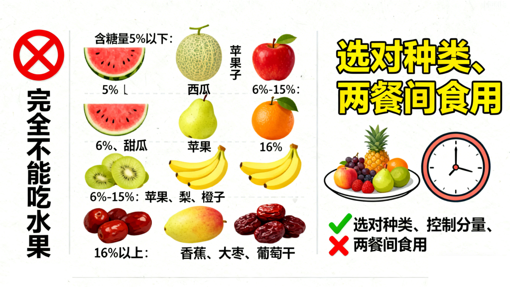 结论:错。水果中的维生素、矿物质和膳食纤维,对糖尿病患者预防并发症有益,完全禁止食用反而不利于营养均衡。关键在于“选对种类、控制分量、找对时间”。