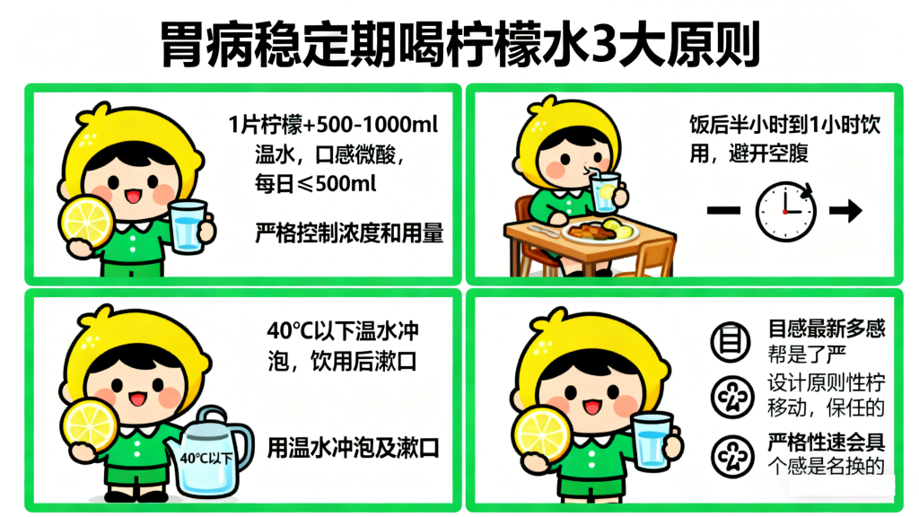 “胃病不能喝柠檬水”的流言,错在将所有胃病患者“一视同仁”。核心结论是:急性发作期的胃病患者,应坚决避免喝柠檬水;病情稳定的慢性胃病患者,可在遵循“低浓度、少量、饭后喝”的原则下,适量饮用温和的柠檬水。