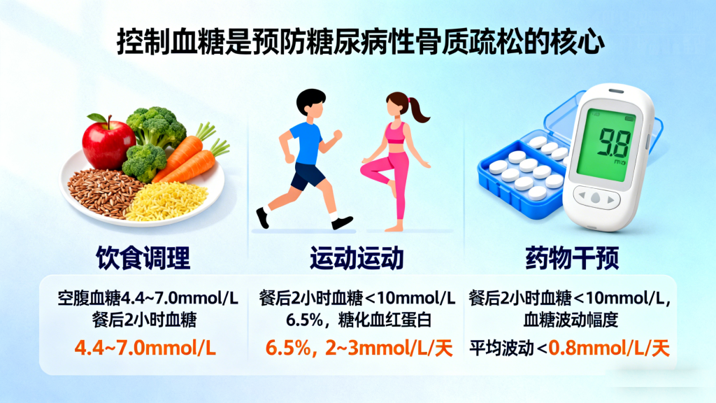 预防糖尿病性骨质疏松,需坚持“控糖为根本、筛查为前提、营养与运动为基础、药物为补充”的综合策略,从多维度守护骨骼健康。