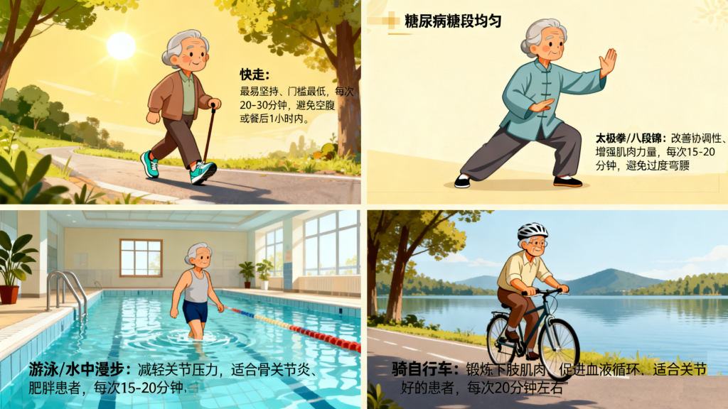 1. 有氧运动:控糖核心,温和安全