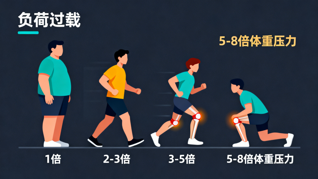 膝关节的损伤并非偶然,对体重基数大的人群而言,风险主要源于以下三点: